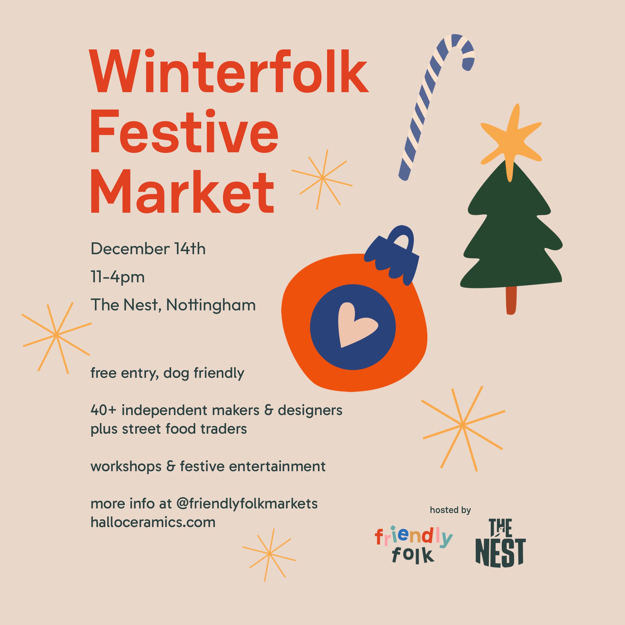 Come and celebrate the magic of making, community & support small businesses this Christmas at Winterfolk Festive Market — the first of its kind, and the start of a new Nottingham festive tradition! 🎄