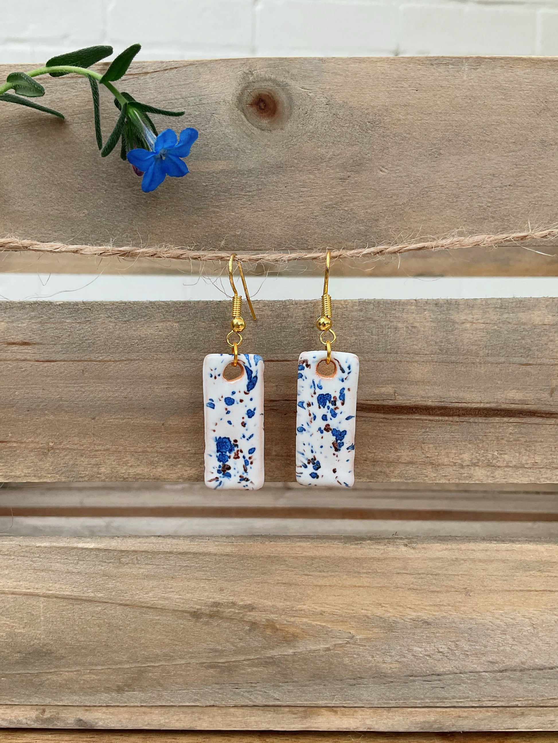 Handcrafted, Ceramic Paddle shaped earrings, finished in our playful Confetti glaze.