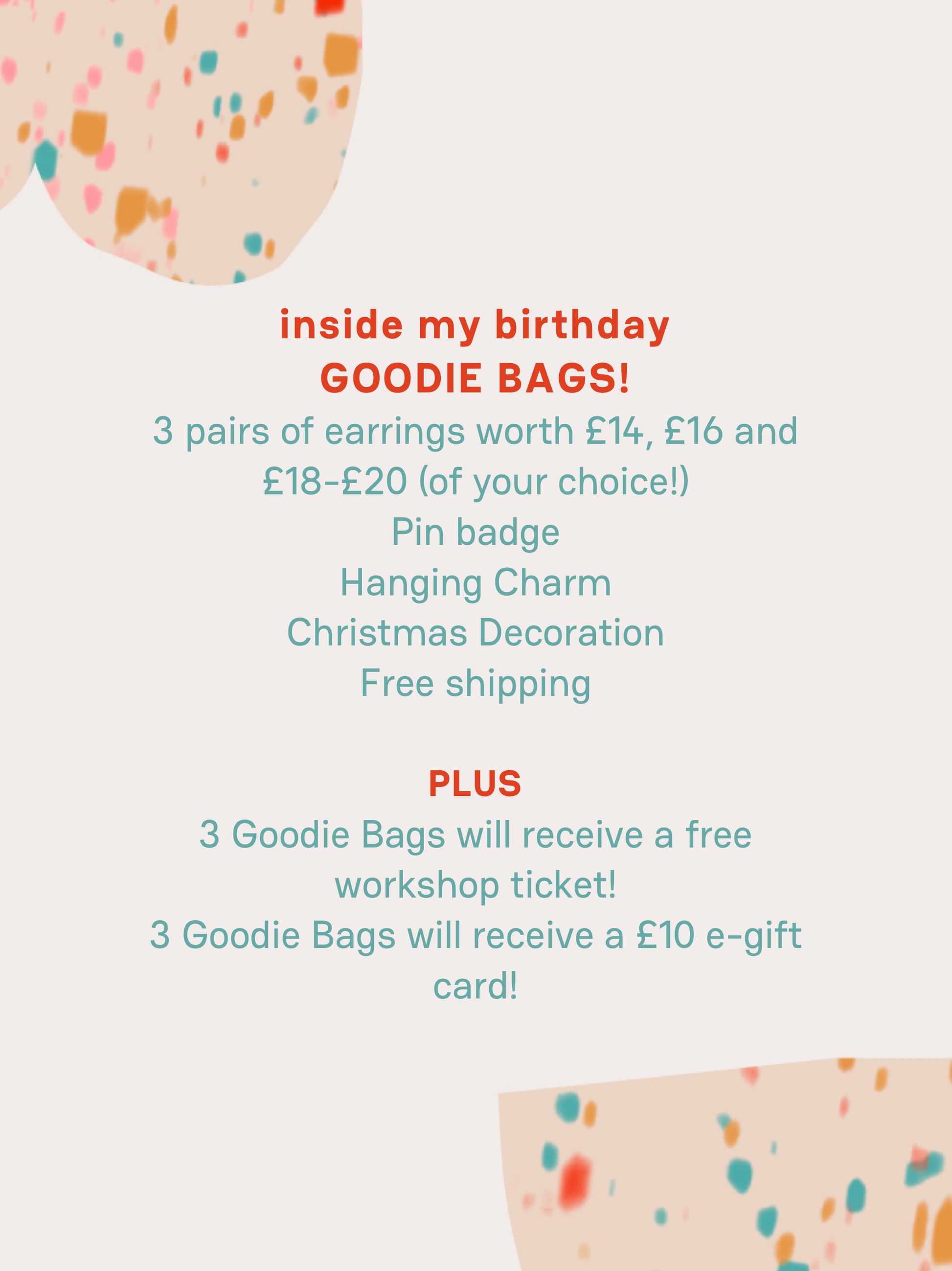 Each Goodie Bag costs £45, but worth £70+ in total! Goodie Bags that receive the gift cards are worth £45 and with the workshop ticket, £109! But only £48 for you!! Big birthday fun savings to be had. 🤗✌🏼