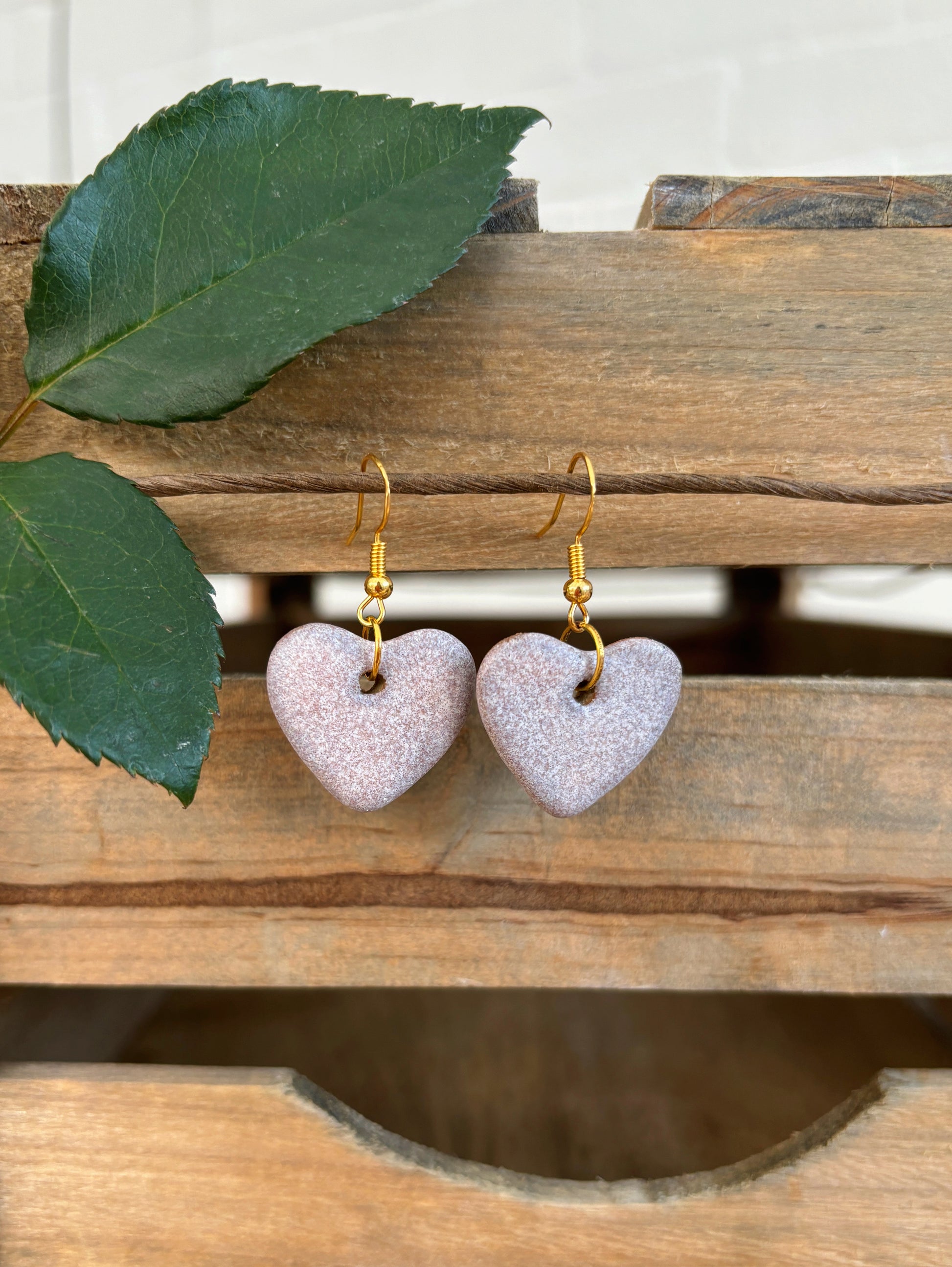 Ceramic Heart shaped earrings finished in our new dusty Blossom glaze. Available in Silver or Gold hooks, or Silver or Gold hoops.